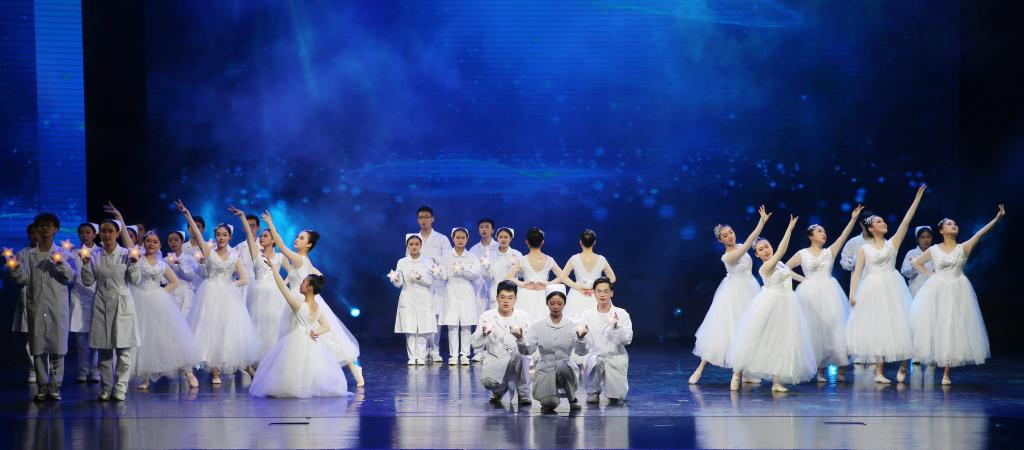 医学院师生作为学校代表受邀参加活动,并带去了由陈盈盈老师指导编排、32名学子演出的压轴节目《星辰大海》,同学们用优美的舞蹈和激昂的歌唱表达了医学生对护理事业的敬仰和肃穆之情,演出受到在场观众的一致好评。