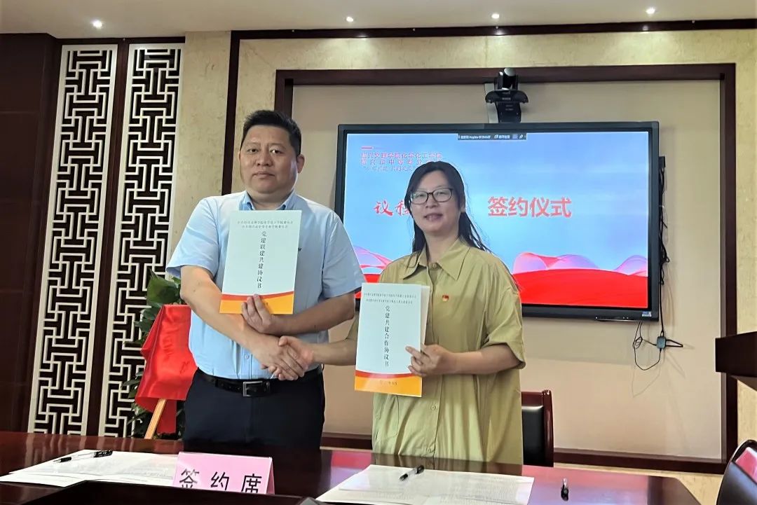 化学化工学院党委书记徐青、执行院长曾敏峰和与对方学校分别就党建共建和合作共建签约。药学系教工党支部书记杜奎与绍兴市中等专业学校生物化工系党支部就支部共建签约。