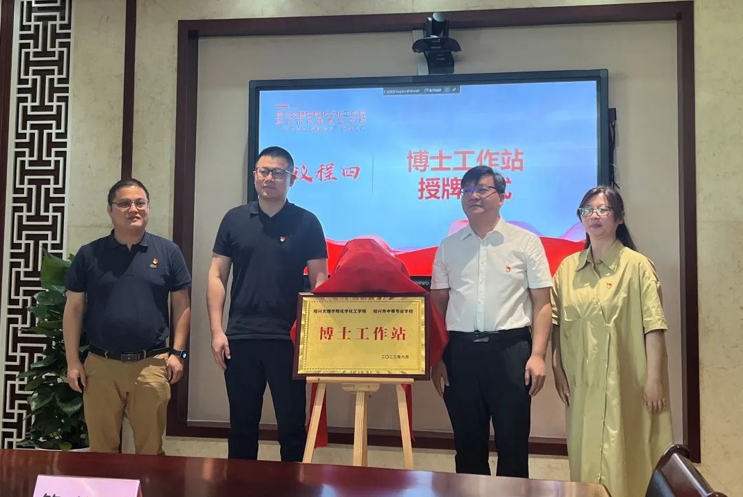 为进一步推进校地协同、党建融合,6月9日上午,化学化工学院与绍兴市中等专业学校在绍兴中专崇德楼301会议室举行“合作共建 共同发展”签约仪式暨“博士工作站”揭牌仪式。绍兴市教育局党委委员、副总督学朱伟明,共建双方单位人员出席签约仪式。