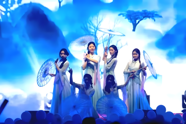 全场迎新晚会分为“新光璀璨·奏响新章”“回首同聚·共绘韶华”“扬帆征途·逐梦青春”三个篇章,由舞蹈、歌曲、话剧、朗诵、小品、音乐情景剧等多种形式组成。