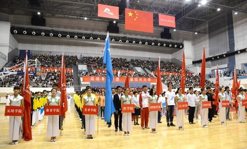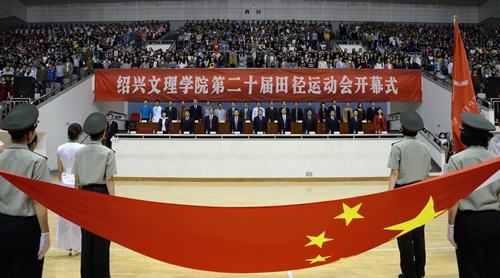 10月29日下午,学校第二十届田径运动会在河西体育馆隆重开幕。校领导周达军、叶飞帆、唐和祥、钱水祥、杜时贵、华小洋、邱卫东、杨大明,校党委委员,校长助理,本届运动会组委会成员和各二级学院主要负责人在主席台就坐。校党委书记周达军宣布运动会开幕,校长叶飞帆致开幕辞,本届田径运动会组委会主任、副校长寿永明主持开幕式。师生代表4000余人参加了开幕式。