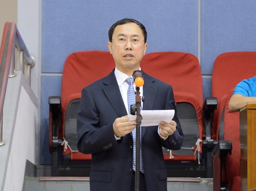 叶校长指出,教育部今年专门修订出台了《国家学生体质健康标准》,对大学生的身体素质提出了更高要求。大力发展体育运动,广泛开展群众性体育活动,不仅是全面贯彻党的教育方针,全面推进素质教育的重要内容,也是丰富校园生活,培养健全人格,促进人才培养的有效载体。叶校长要求运动员们在运动舞台上尽情体验竞赛的魅力,全面诠释体育精神,顽强拼搏,超越自我,充分展示昂扬向上的青春活力、奋发进取的精神风貌和全面发展的优良素质,通过大家的努力,将本届运动会办成一届安全、公平、文明、高水平的运动会;他号召全校师生树立“每天锻炼一小时,健康工作五十年,幸福生活一辈子”的理念,热爱体育,热爱运动,让群众性体育运动成为文理校园的新常态。