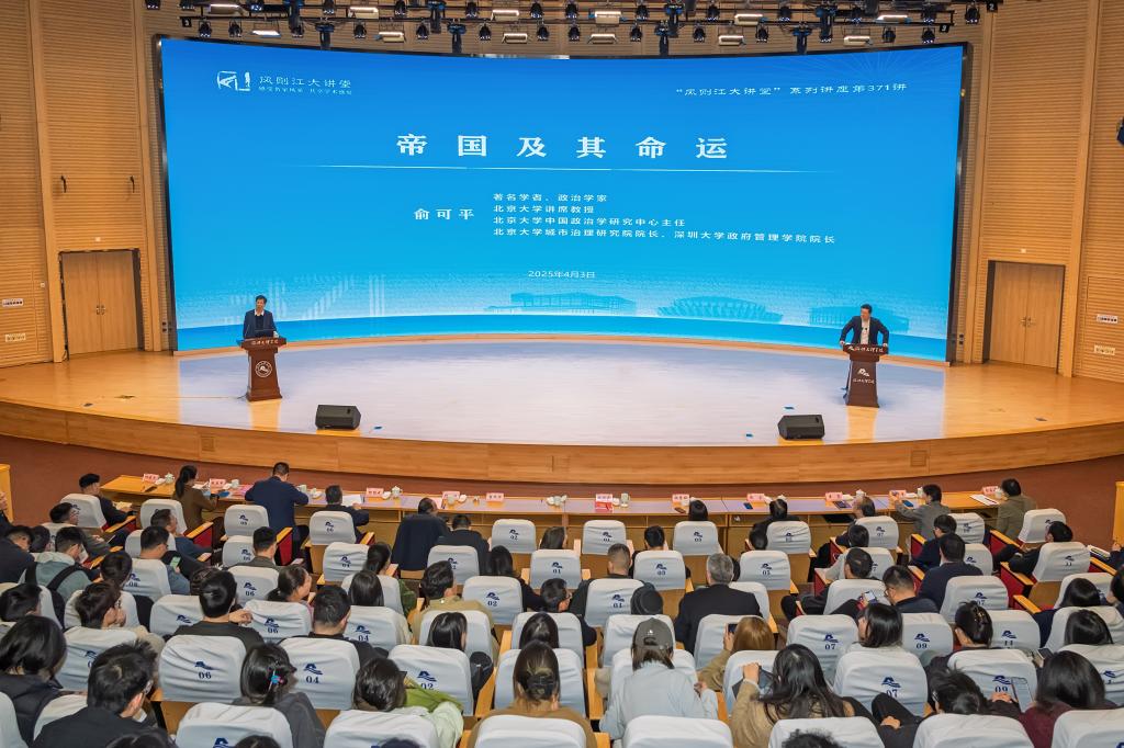 颁奖典礼后,俞可平应邀作客“风则江大讲堂”,为师生作主题为《帝国及其命运》的讲座,系统阐述帝国的本质、兴衰逻辑及对当代国际秩序的启示。讲座由崔凤军主持。