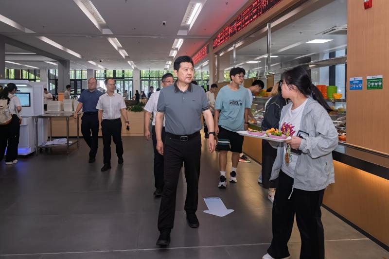 崔凤军带队督导检查南山校区新食堂开学餐饮保障工作,听取了后勤管理处关于新学期开学餐饮准备工作、新餐厅“智能结算系统”建设及运行效果情况的汇报。崔凤军对新食堂建设与智慧化提升工作取得的成效表示肯定,要求后勤管理处充分发挥智慧食堂优势,不断提升供餐保障水平,为师生提供更加优质、便捷的餐饮服务,切实提升师生的获得感和满意度。同时要持续优化菜品结构,兼顾口味与健康,不断满足师生多元化、高品质的膳食需求,全面筑牢校园食品安全防线。