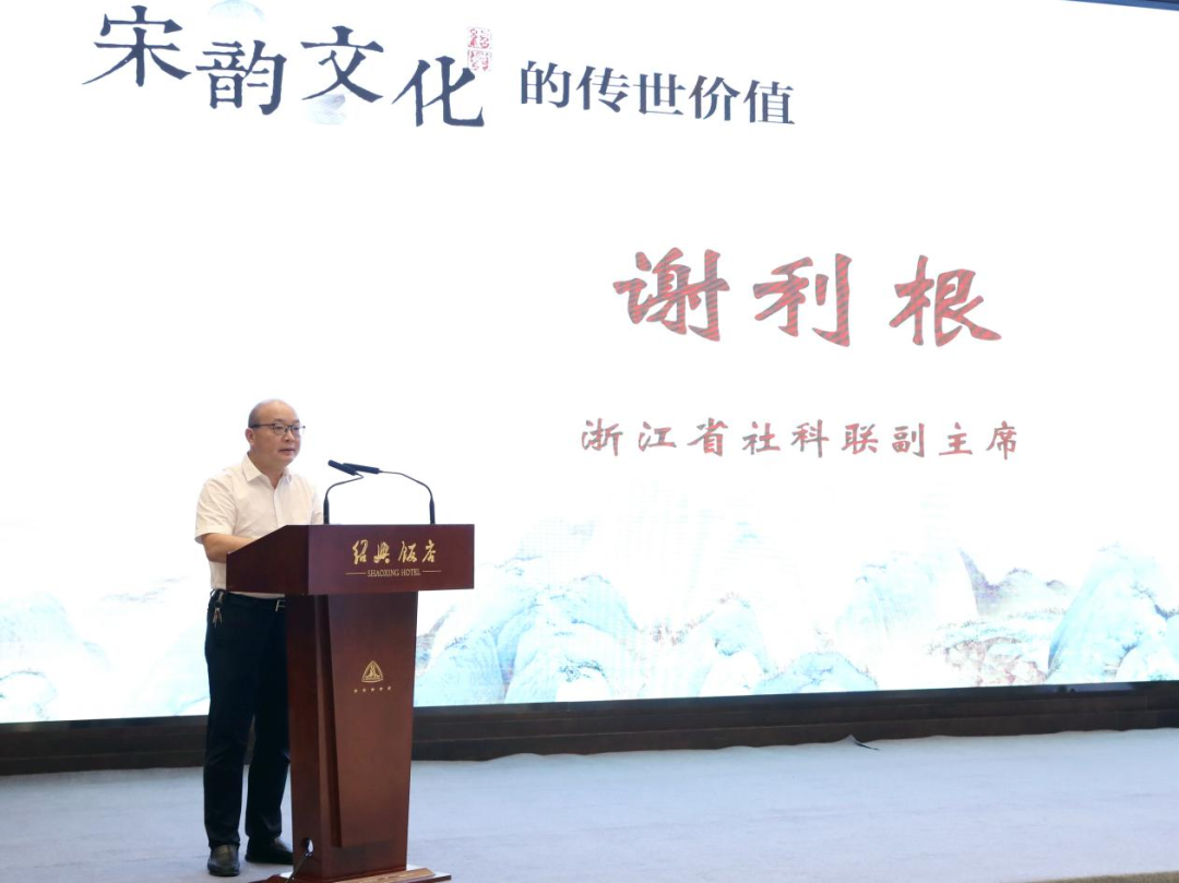 浙江省社科联党组成员、副主席谢利根在开幕式上讲话。他强调发掘绍兴宋韵文化底蕴、助推宋韵文化传世工程,需要做好以下几点,一是要站在省域一体化的高度认识宋韵文化。宋韵文化蕴含着浙江优秀传统文化的精神内核,绍兴要积极进行省、市联动、区域联动,开展特色研究,和全省宋韵文化的整体研究形成优势互补。二是要以全方位的视角研究宋韵文化。宋韵文化是多元、开放、包容的,借助宋韵文化研究平台和团队,系统研究宋韵文化的精神内核、形态特征和历史价值,再从中提炼出绍兴元素、绍兴特色。三是要塑造文化标识,创造文化精品。创新宋韵文化传承模式,开展绍兴文化研究工程重大项目《绍兴宋韵文化研究》等系列文化艺术精品项目,解码宋韵文化基因,全面展示宋代文化的魅力。