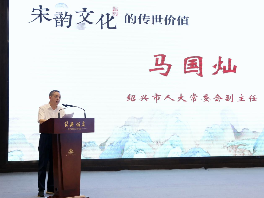 绍兴市人大常委会副主任马国灿在开幕式上讲话,他指出,宋韵文化是沉淀在两千五百多年绍兴文脉中最鲜明的文化印记。绍兴拥有宋陵、宋诗、宋人、宋物等丰富的物质与非物质文化遗产,是南宋王朝最具代表性最重要的历史见证。要全面实施宋韵文化传世工程,牢牢扛起文化使命。大力谋划推进古城整体申遗、宋六陵国家考古遗址公园建设、陆游故里改造提升等工作。扎实推动宋韵文化重要研究项目,持续打响宋韵文化品牌,进一步彰显绍兴文化在全国文化版图中的地位。希望全市社科文化界以此次峰会为契机,瞄准精品立世目标,全方位系统性研究阐述宋韵文化,不断取得标志性成果,加快打造宋韵文化研究新高地。