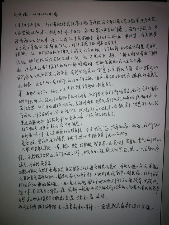 编者按:这是赴湖北医疗队员从武汉发给中国青年报的日记,记录了一线真实的工作状态。有人拿起画笔留存在武汉工作的珍贵记忆,有人创造性地解决防护服没有口袋的问题,他们默默对自己说加油,希望患者能早日康复。