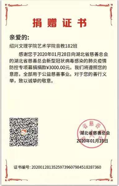 倡议一出,全院师生积极响应,一场爱心接力赛拉开序幕……截止目前,筹得爱心捐款共计5560元,向湖北省慈善总会捐赠,用于新型冠状病毒肺炎疫情防控。