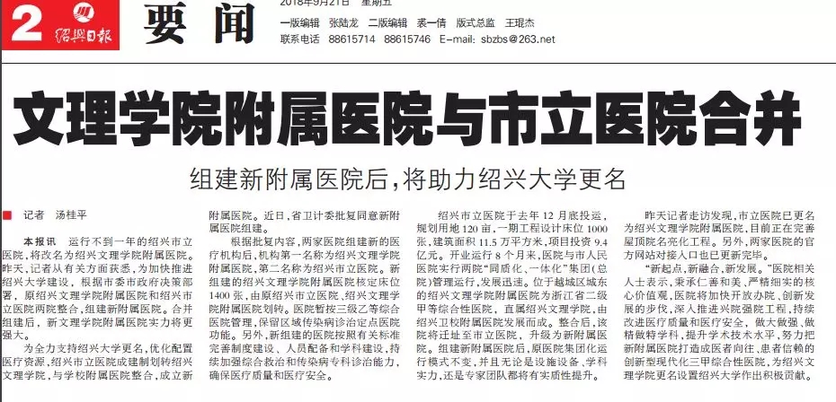 报道还称,组建新附属医院后,原医院集团化运行模式不变,并且无论是设施设备、学科实力,还是专家团队都将有实质性提升。
