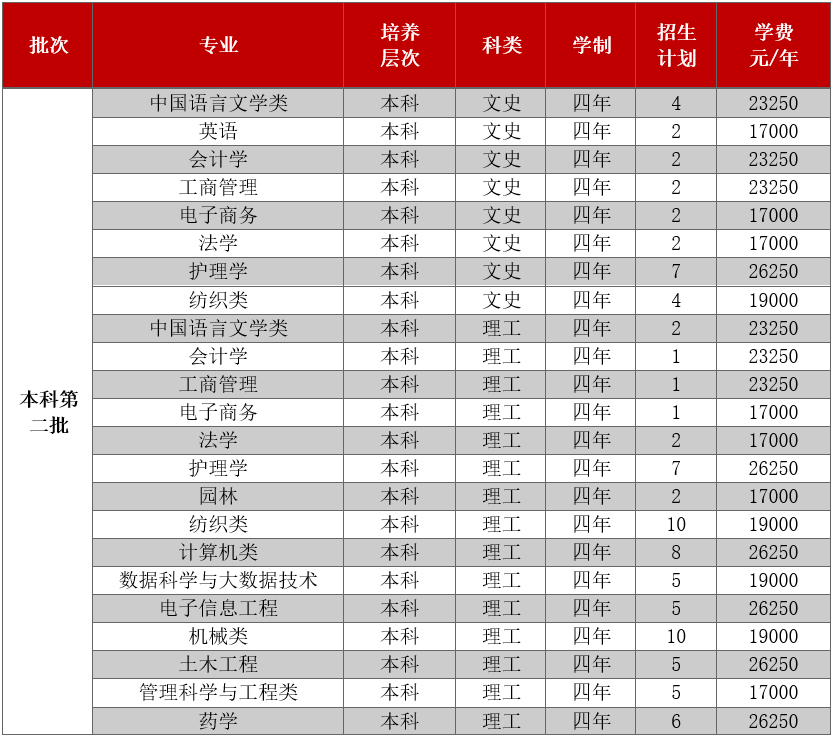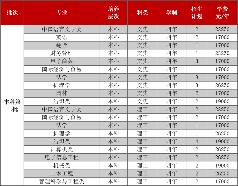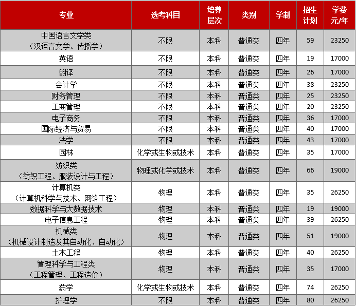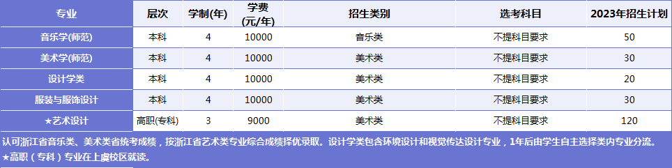 只面向浙江省招生,共有5个专业参与招生。其中面向普通类平行计划招生280人,艺术类第二批美术类120人。