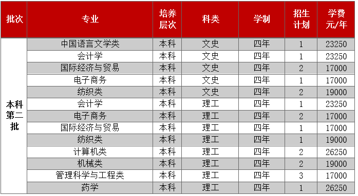 2.纺织类,一年后由学生自主选择分流到纺织工程、服装设计与工程专业。