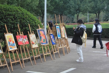 草坪另一侧,由亚洲红纺织科技有限公司提供面料,以项目为驱动,纺织服装学院服装系师生依托《女装设计》、《立体裁剪》课程,设计创作开发的“国风、淑女(小碎花)、现代”三大系列60套“春夏”女装正在展出并推向市场,生动践行“课程作业作品化、作品产品化、产品市场化”教育教学改革理念;并排展出的还有来自纺织服装学院《手工刺绣》《手工印染技法》《扎蜡染艺术与创作》等课程和部分学生创新创意实践项目的手工刺绣、蜡染、成衣等101余件创意设计作品,年轻设计师把课堂从教室搬到了室外,用一场展览向大家汇报自己的学习创作成果。