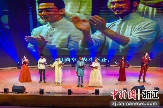 值得一提的是,在当晚的情境式诗朗诵《青春万岁》节目中,来自7个国家的青年学子向中国革命先贤致敬,用汉语精彩地演绎了青春之歌。
