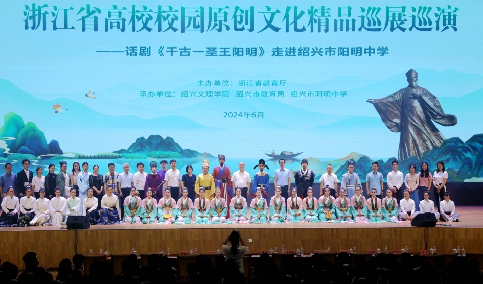 绍兴市王阳明研究会副会长、绍兴市少儿艺术学校校长马士力观看了演出,他说,话剧《千古一圣王阳明》推出已有5年,吸引了一批又一批观众,在一次次演出中,表演的艺术越来越圆润了,也越来越具有感染力了,它的巡展巡演,标志着绍兴阳明文化走进校园,走进了学生的心中。(记者 周能兵)