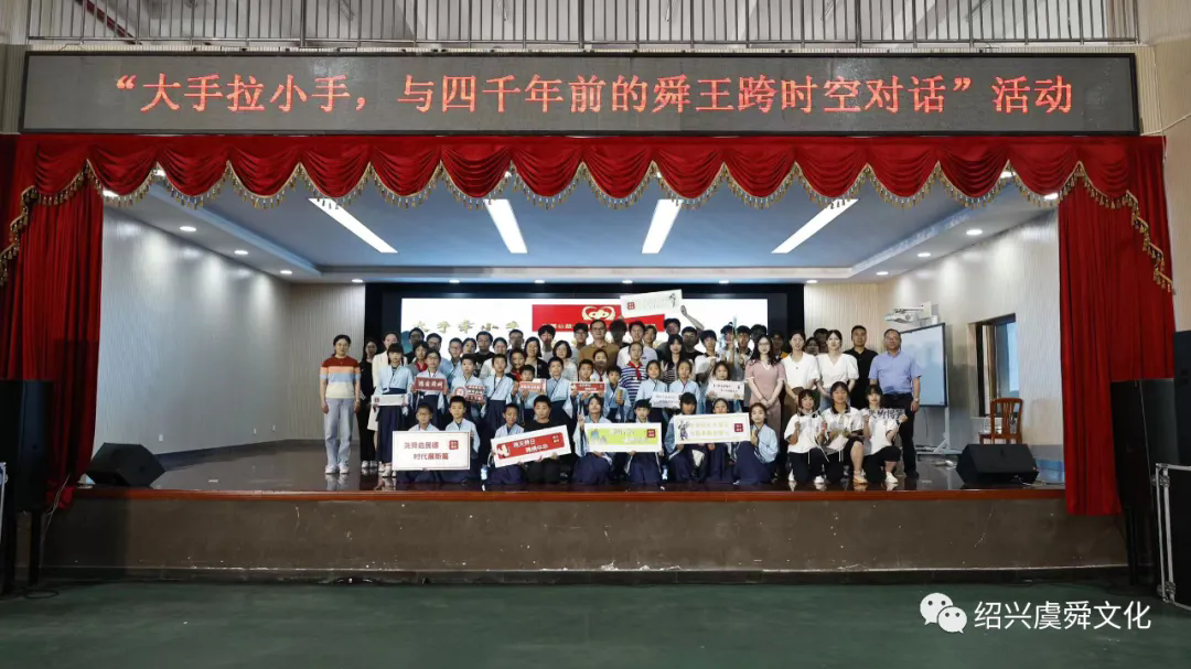 第三篇章是大手拉小手,一起对话典籍里的舜王。大手拉小手,时空穿梭之旅还在继续,大学生主讲人冯煊如带领中小学生,“穿越时空”共同对话典籍里的舜王。第一站来到两千年前春秋战国时期,与孔子的弟子一起学习《尚书·舜典》,小学生们在大学生主讲人的带领下饱含感情地诵读《舜典》,从孔子解读中了解舜王。第二站来到了西汉时期,大中小学生共同探讨司马迁对“天下明德皆自虞帝始”的评价。第三站是跟着时任会稽府签判(相当于法院院长职务)王十朋,深入民间考察风土人情,了解虞舜精神如何熏陶着千年前的绍兴人。第四站是穿越到伟人毛泽东作诗创作的“六亿神州尽舜尧” 小手”一起了解历代对虞舜精神的歌颂与传承。