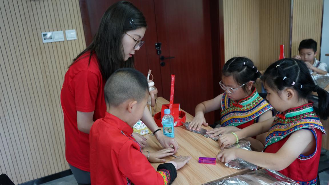 活动中,志愿者引领孩子们巧手匠心,利用瓦楞纸、红胶带等环保材料,共同编织出一顶顶绚丽的手工凤冠,不仅锻炼了动手能力,更让孩子们在创作中深刻感受畲族文化的独特魅力。随后,“我是畲服推广员”活动火热开启,孩子们化身小小设计师,从身边服饰汲取灵感,探讨色彩与图案的奥秘,激发了对民族文化的浓厚兴趣与自豪感。