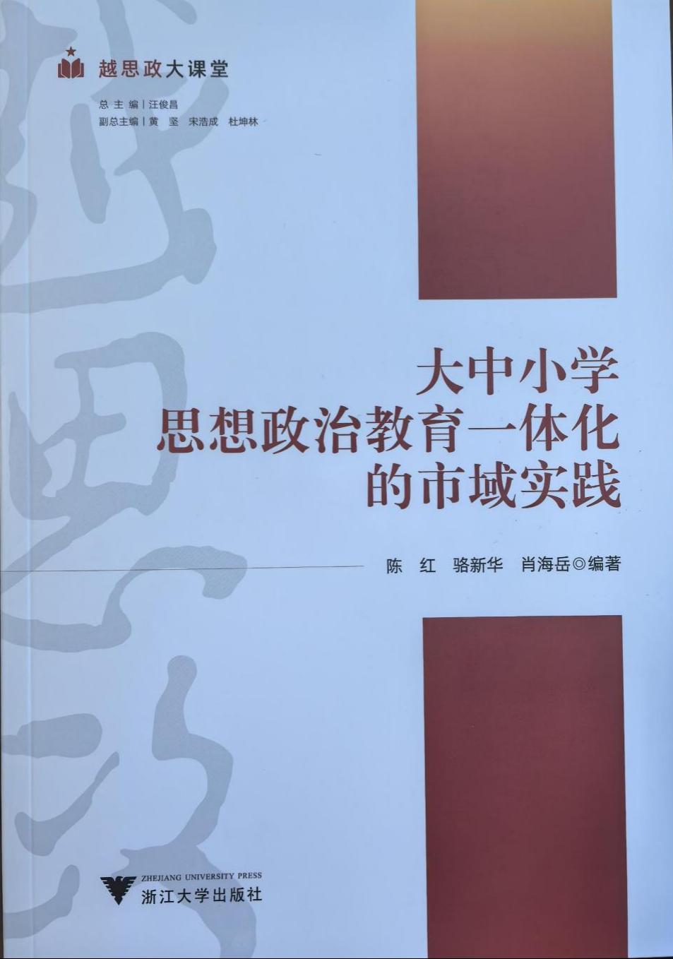 近日,“越思政大课堂”系列丛书之三——《大中小学思想政治教育一体化的市域实践》由浙江大学出版社正式出版。该书是浙江绍兴推进大中小学思政教育一体化建设市域实践的成果总结,为全国思政一体化市域实践提供了借鉴参考。