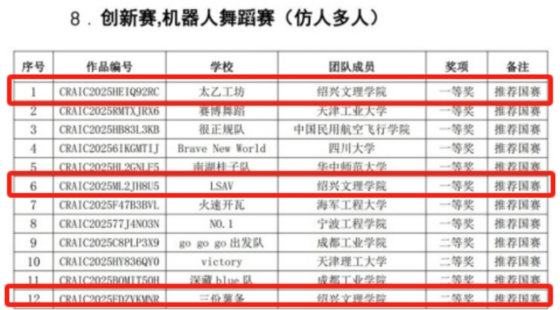 近日,第二十七届中国机器人及人工智能大赛九省联赛圆满落下帷幕,智能工程学院学子表现优异,共获得一等奖4项、二等奖2项,其中,在仿人机器人单人舞、多人舞两个赛项中获得了第一名的好成绩。所有参赛队均获得了全国总决赛的参赛资格。